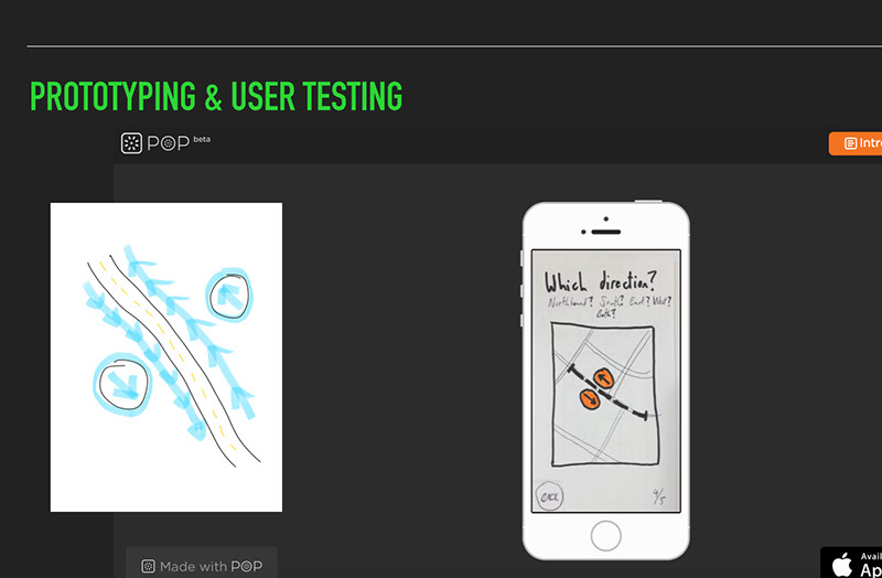 Retrospective: As the world migrates more into urban centers, active transportation is going to be a crucial part of reducing automotive congestion and improving public health. I've personally almost been hit by a car twice at a dangerous intersection, and I'd like to steer other cyclists away from similar circumstances. I've received lots of positive feedback outside of my design course on BikeWays, and intend to work with a developer to build out a minimum viable product and continue iterating on this design.