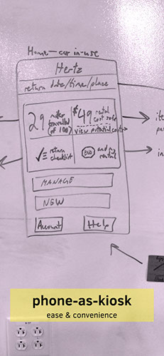 In the end, all of these solutions require significant simplification and automation of Hertz' current rental process — improving that rental process is a worthwhile and significant change on its own. We enabled the phone to replace the rental office.
